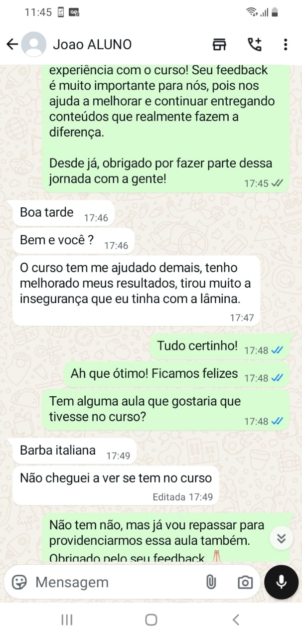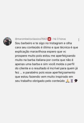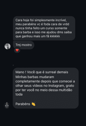 "Lembro quando tremia na hora de fazer minha primeira barba. Hoje, depois de 10 anos e milhares de barbas feitas, quero te ensinar o caminho mais rápido para dominar essa arte sem passar pelos mesmos perrengues que eu passei."